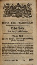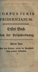 Corpus Juris Fridericianum / 1,4: Buch 1, Von der Prozeßordnung ; Theil 4, Von den Gesetzen, welche die Prozeßordnung genauer bestimmen
