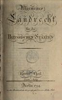 Allgemeines Landrecht für die Preussischen Staaten, Erster Theil, Berlin 1794