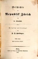 Bluntschli, Johann Caspar/J. J. Hottinger, Geschichte der Republik Zürich von Dr. Bluntschli, Dritter Band, 2. Aulage, Zürich 1856