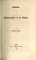 Bluntschli, Johann Caspar, Geschichte des Jesuitenkampfes in der schweiz, Von einem Zürcher, Zürich 1845