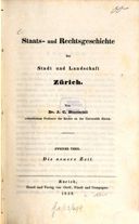 Bluntschli, Johann Caspar, Staats- und Rechtsgeschichte der Stadt und Landschaft Zürich, Zweiter Theil, Die neuere Zeit, Zürich 1839