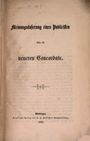 Bluntschli, Johann Caspar, Meinungsäußerung eines Publicisten über die neueren Concordate, Nördlingen 1860