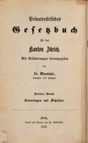 Bluntschli, Johann Caspar, Privatrechtliches Gesetzbuch für den Kanton Zürich, Mit Erläuterungen, Dritter Band, Forderungen und Schulden, Zürich 1855