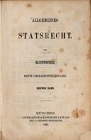 Bluntschli, Johann Caspar, Allgemeines Statsrecht, Erster Band, Dritte umgearbeitete Auflage, München 1863