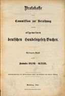 Protokolle der Commission zur Berathung eines allgemeinen deutschen Handelsgesetz-Buches, Beilagen-Band zu den Protokollen DXLVIII-DLXXXIX, Zusammenstellung der Erinnerungen gegen den Entwurf aus zweiter Lesung, Nürnberg 1861