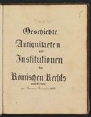 [?] Savigny, Friedrich Carl von, Geschichte, Antiquitaeten und Institutionen des Römischen Rechts, Berlin 1825