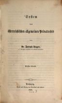 Unger, Joseph, System des österreichischen allgemeinen Privatrechts. Bd. 1, 1. Aufl., Leipzig 1856