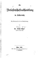 Unger, Joseph, Die Verlassenschaftsabhandlung in Oesterreich. Ein Votum für deren Aufhebung, Wien 1862