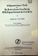 Tuhr, Andreas von, Allgemeiner Teil des schweizerischen Obligationenrechts, Erster Halbband, Wesen und Inhalt der Obligation, Entstehung aus Vertrag, unerlaubter Handlung und ungerechtfertigter Bereicherung, Tübingen 1924